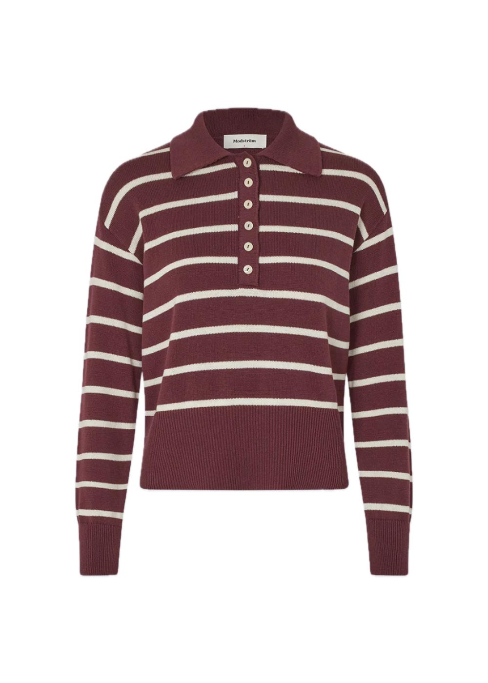 Ervaar klassieke stijl met deze bordeaux gestreepte polo van Modström. De boxy, cropped pasvorm maakt hem ideaal voor zowel het dagelijks leven als feestjes. Perfect voor wie een tijdloze garderobe-update wil.