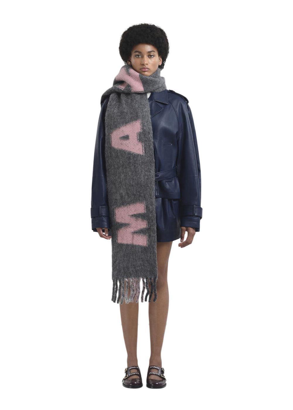 Dette halstørklæde er fremstillet i en blød uldblanding med alpaka og mohair. Det markante logo og de fine frynser skaber et stilfuldt udtryk, der tilføjer varme og personlighed til dit outfit.
