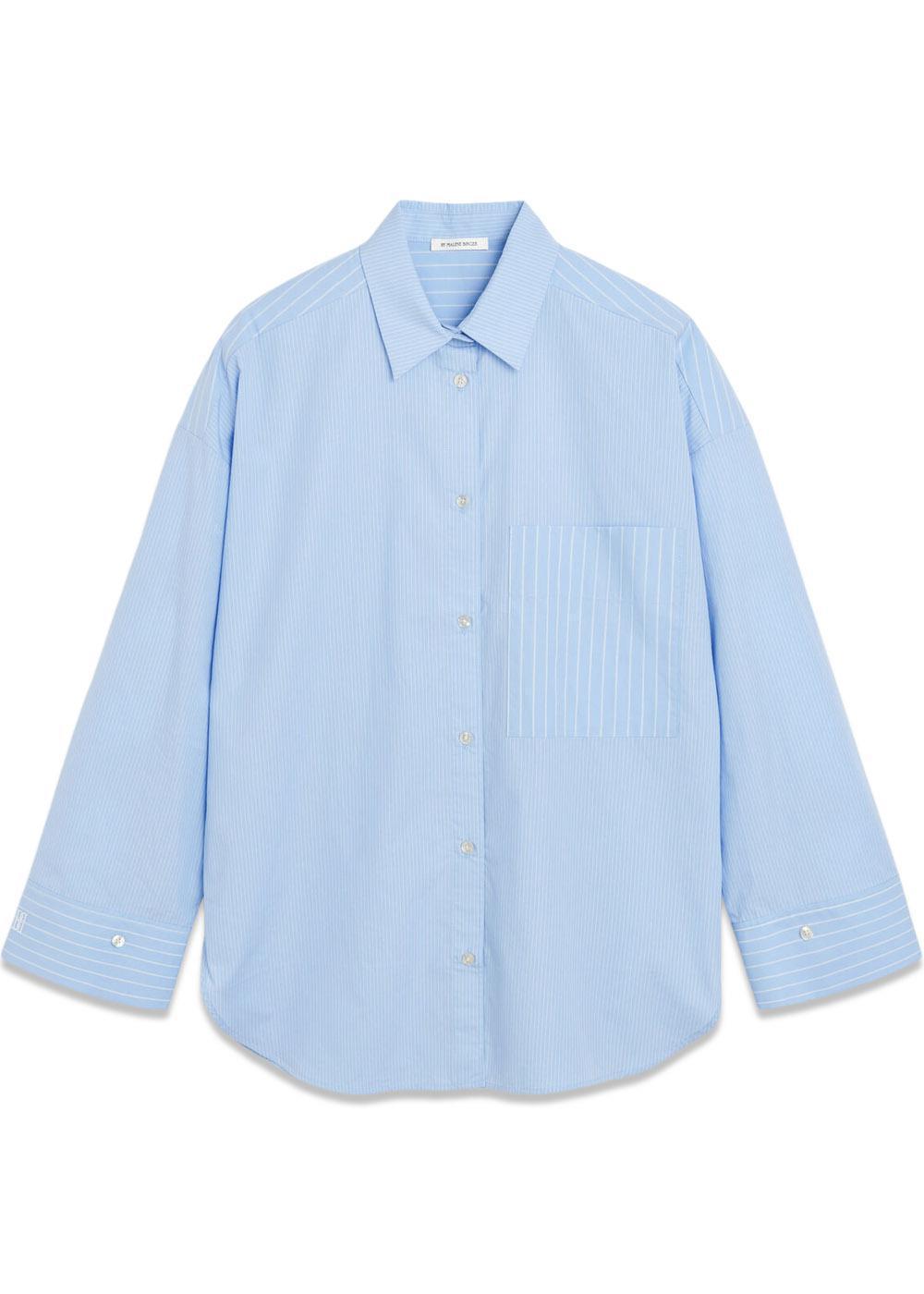 Oplev den klassiske elegance med denne blå stribede skjorte, der kombinerer en oversize pasform med en stilfuld polo-krave. Perfekt til både hverdag og formelle anledninger.