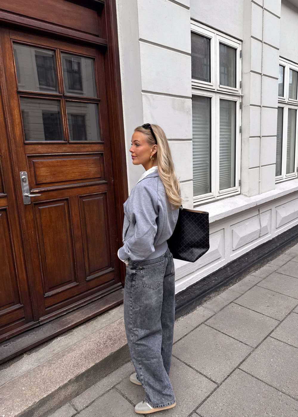 Aya Shadow Jeans is geïnspireerd op de stijl van de jaren 90 met een losse, rechte pasvorm. De broek heeft een hoge taille en is uitgevoerd in een zwarte en grijze acid wash.