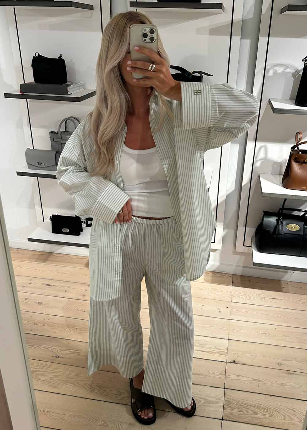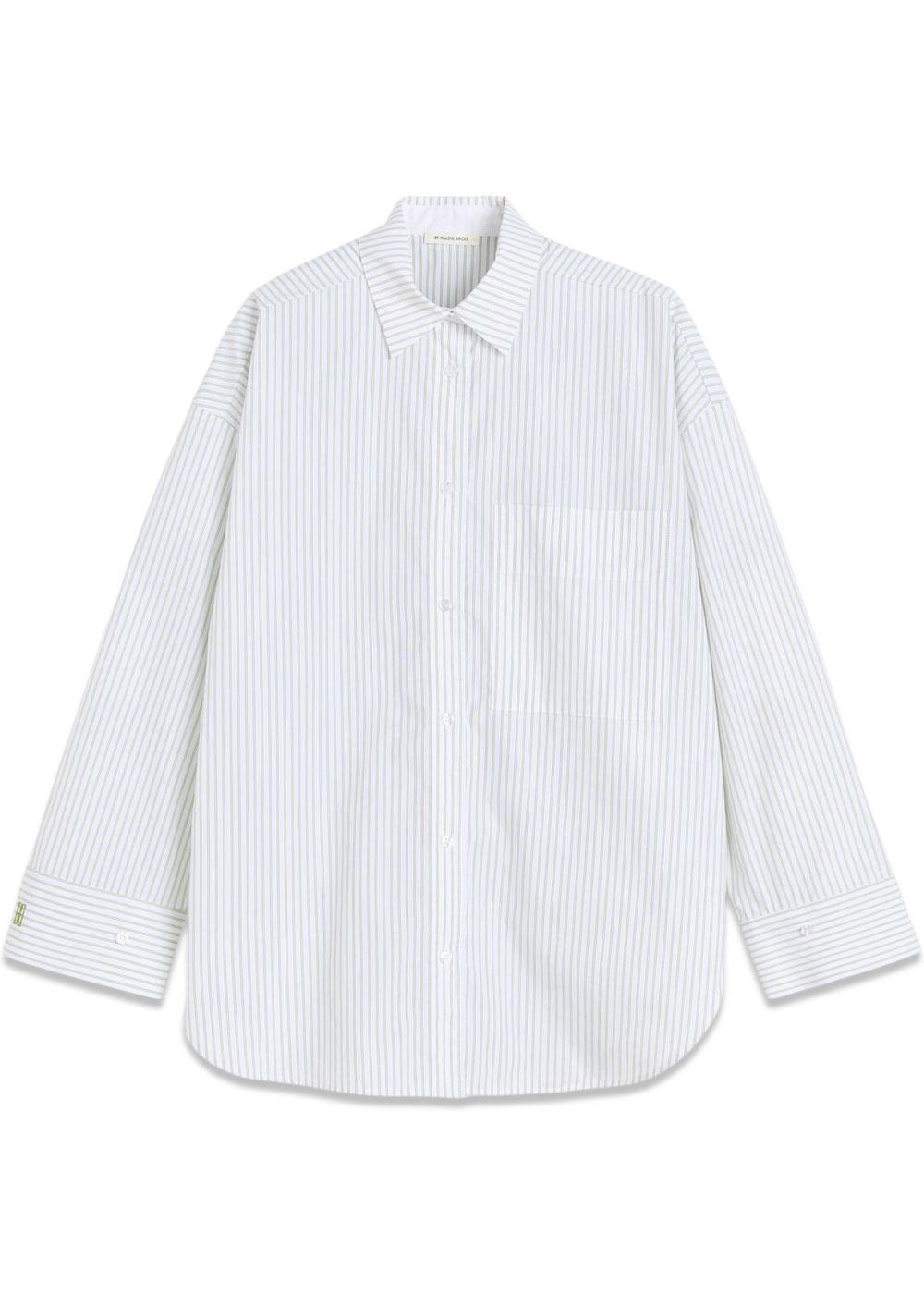 DERRIS er en stribet overshirt i hvid og creme med en løs pasform. Skjorten er fremstillet i 100% økologisk bomuld og har drop-shoulder, spidskrave samt en enkelt brystlomme.