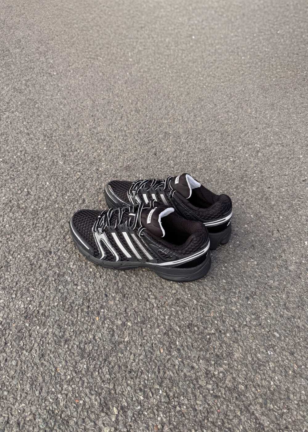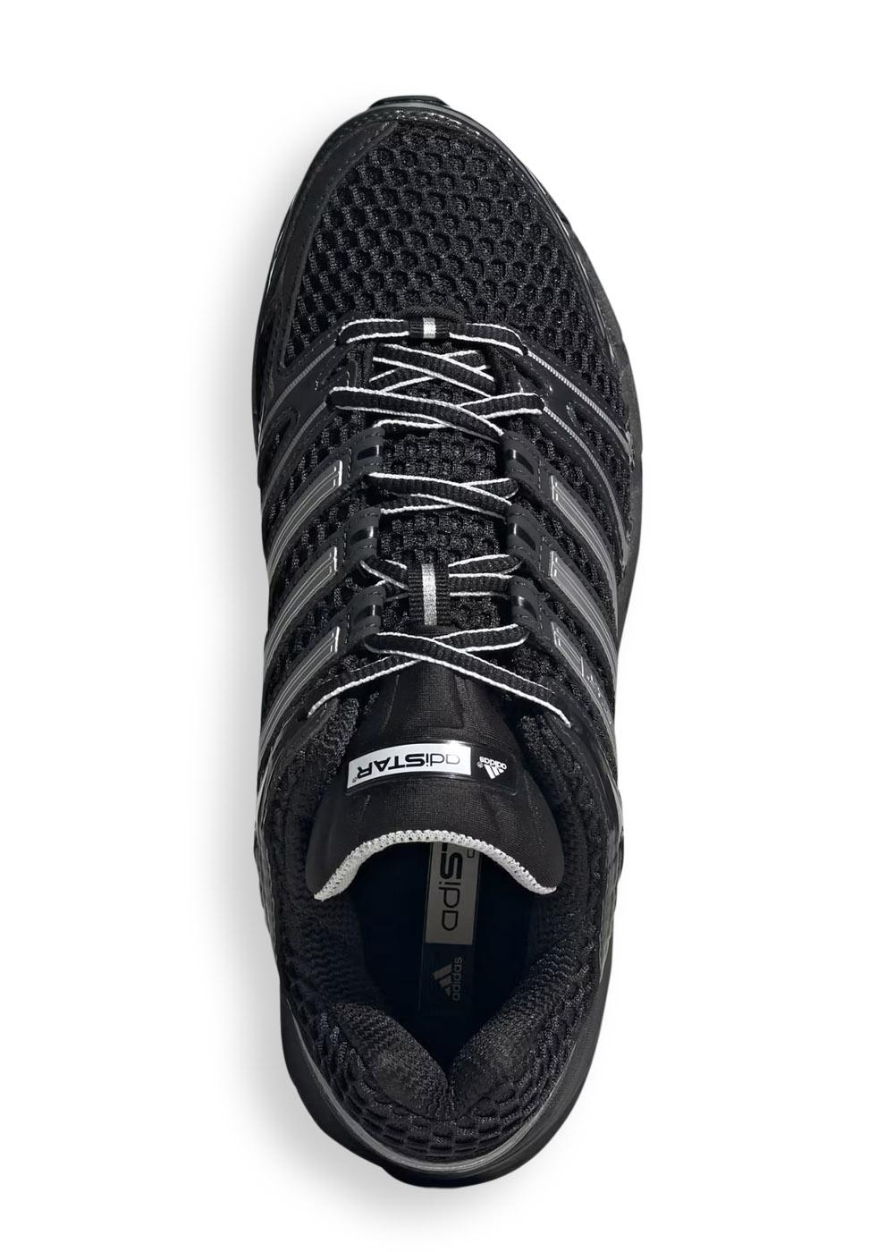 ADISTAR CONTROL 5 is een sportschoen in zwart en grijs. De schoen heeft een bovenwerk van mesh met zilveren strepen en een platte zool voor dagelijks gebruik en sporten.