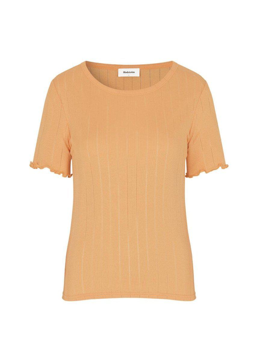 En t-shirt er et uundværligt basisitem og en helt enkel t-shirt kan være virkelig flot, hvis den er i en lækker kvalitet og sidder lige i øjet. Der findes t-shirts i forskellige print, i lækre kvaliteter og logo t-shirts fra blandt andet Soulland, Wood Wood eller Han Kjøbenhavn. Vi synes denne fra Modström er et virkelig godt valg. Brug Issy t-shirt - Apricot Cream under en blazer for et klassisk og ubesværet look, til en nederdel eller et par jeans.