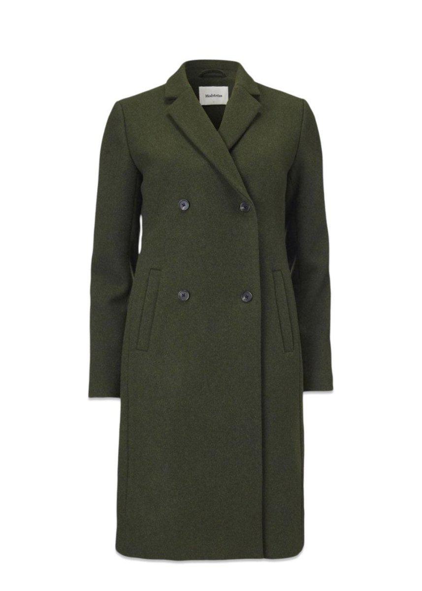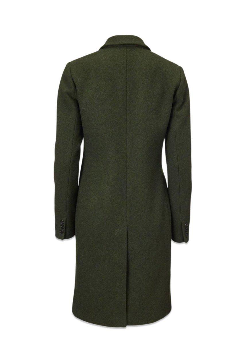 Odelia coat er en elegant uldfrakke i Dark Army. Frakken går til knæene, har knappelukning og er taljeret, hvilket giver en virkelig fin pasform.