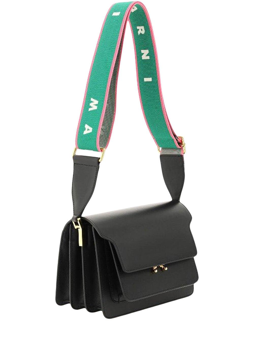 Skuldertasker kommer i massevis af former og farver og er svær at undvære til både hverdag og fest. En skuldertaske fra Marni kan bruges til stort set alt og findes i mange forskellige størrelser afhængig af, hvor meget plads du har brug for. TRUNK BAG - Black+Garden Green+Fuchsia+Sil kan fuldende dit look eller være netop det item, der gør dit outfit helt unikt.